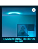 A luminária de teto LED Rune oferece um efeito de iluminação flutuante com combinações dinâmicas de cores e iluminação de zona dupla. Crie cenas personalizadas utilizando sua zona central de luz ambiente energizante branca fria ou quente e seu anel de luz colorido, para surpreender harmoniosamente em todos os momentos. Possui as seguintes medidas: altura de 4,5 cm, comprimento de 40 cm, largura de 40 cm e peso líquido de 1,2 kg.