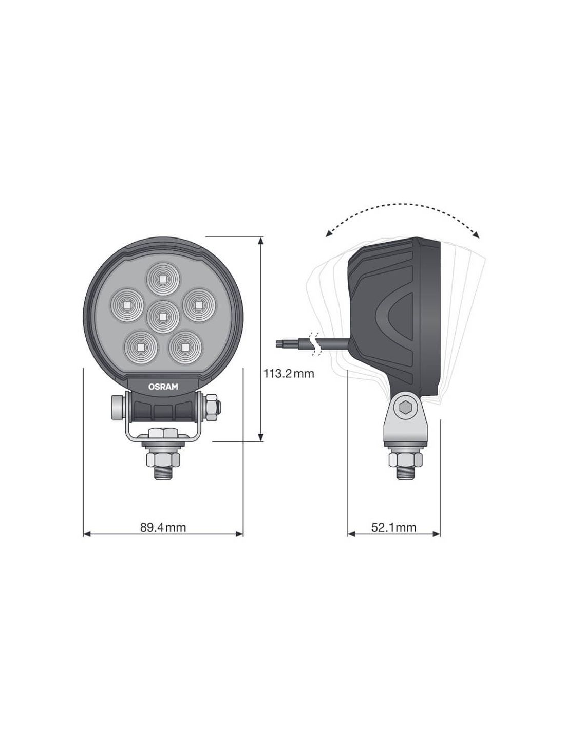Inclui: Luz de trabalho LED Osram Round VX100-WD com cabo de 0,45 cm, suportes e parafusos de aço inoxidável para instalação.