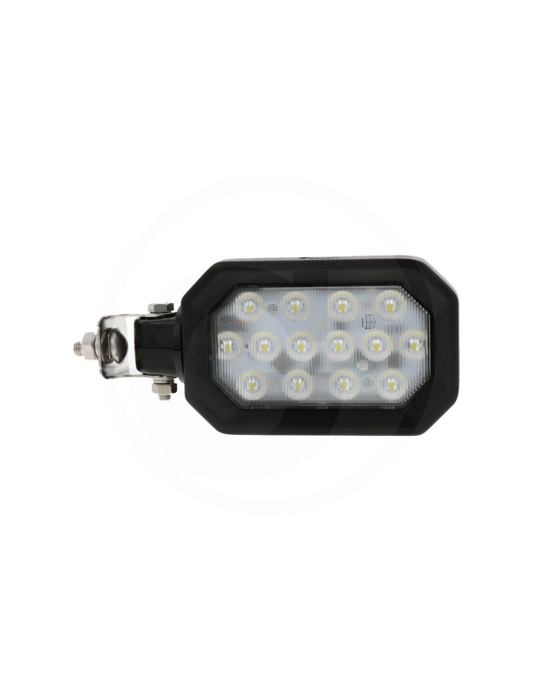 Luz de trabalho LED retangular de 36 W e 3600 lm com suporte lateral giratório que permite direcionar a luz conforme necessário. Durável e com certificação IP67/IP6K9K , é compatível com Case IH, Valtra, Fendt, New Holland e Fiat . Acompanha um cabo de 1,5 metro para conexão.