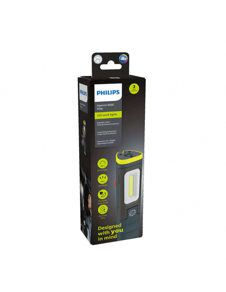 Se precisar de mãos livres para trabalhar, prenda a luz com segurança graças ao gancho retráctil rotativo de 360° incorporado e ao potente íman. O Pilar Philips Xperion 6000 foi concebido para utilização em ambientes de trabalho exigentes, com resistência ao impacto IK07, resistência à água IP65 e uma superfície resistente a químicos e solventes de oficina.