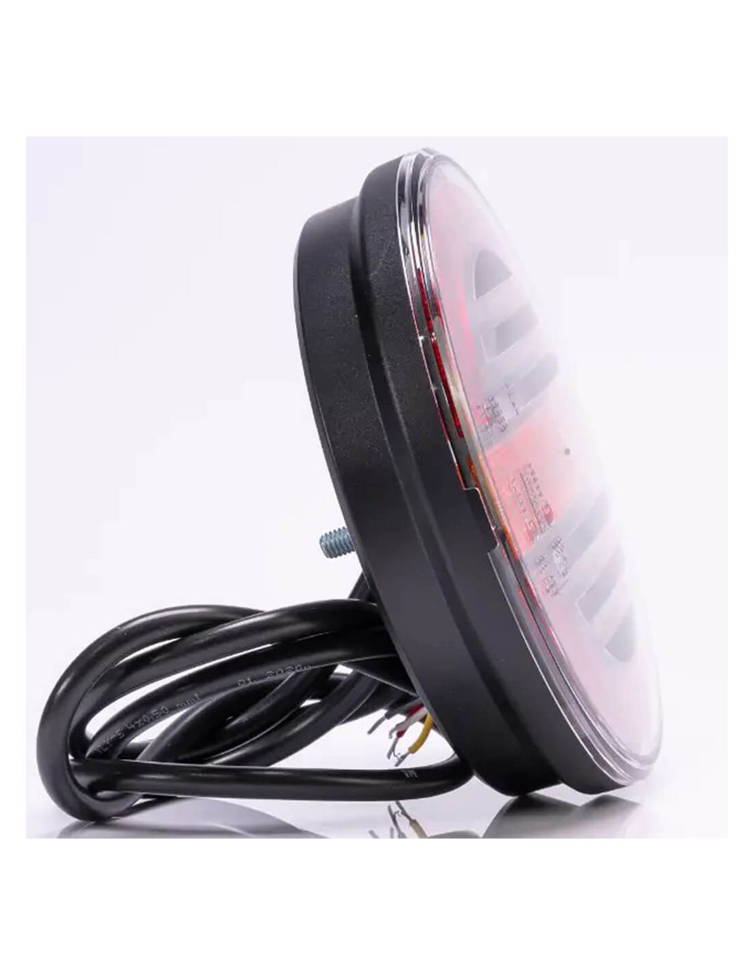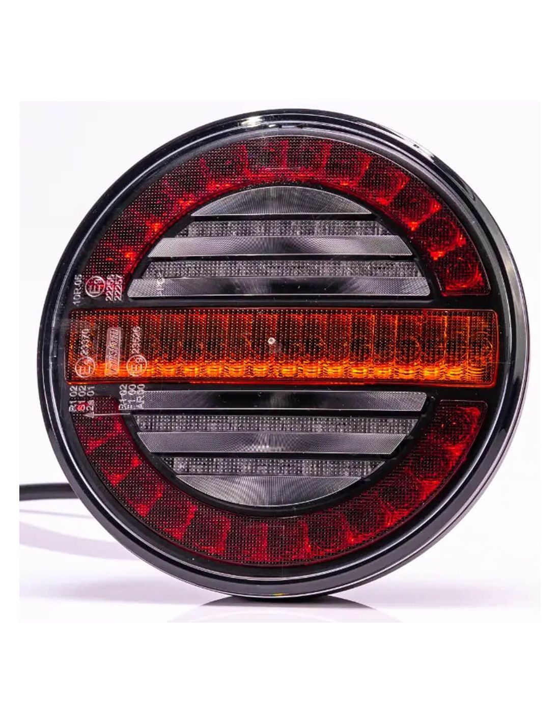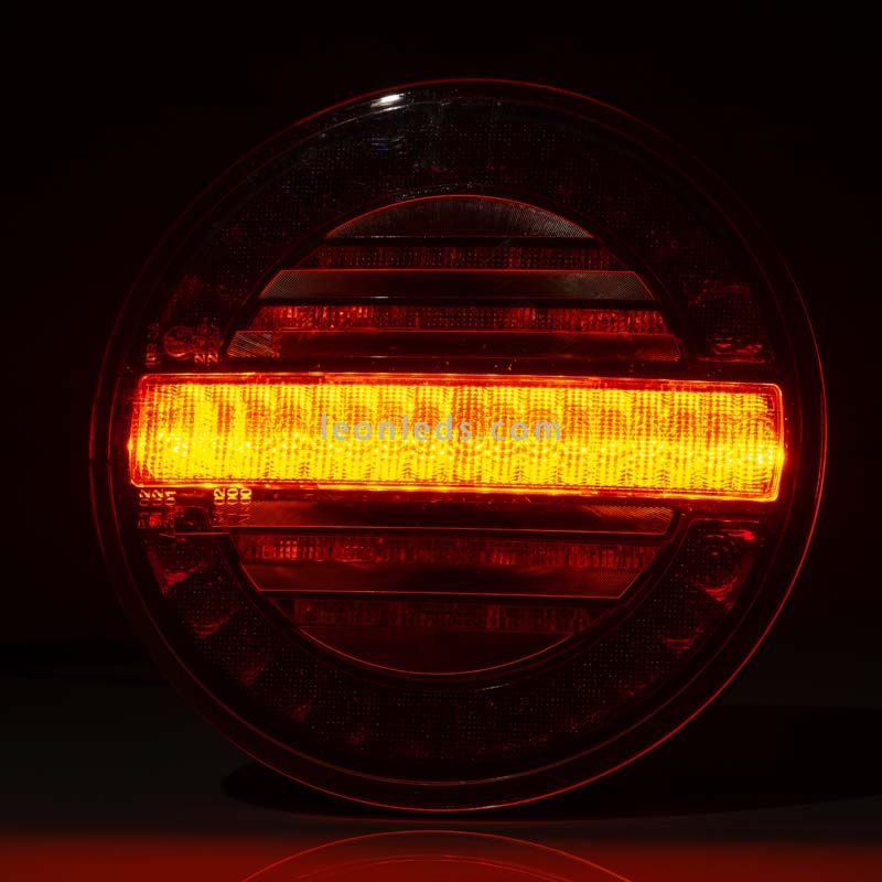 A nova lanterna traseira redonda de LED da Fristom , a FT-213 , apresenta um design moderno com fundo preto e é uma lanterna de LED muito brilhante e potente. Ela inclui três funções: seta dinâmica, luz de posição e luz de freio. Adequada para instalações de 12V e 24V, é homologada e inclui um cabo de 1 metro para instalação.