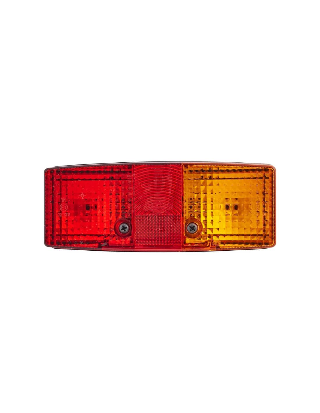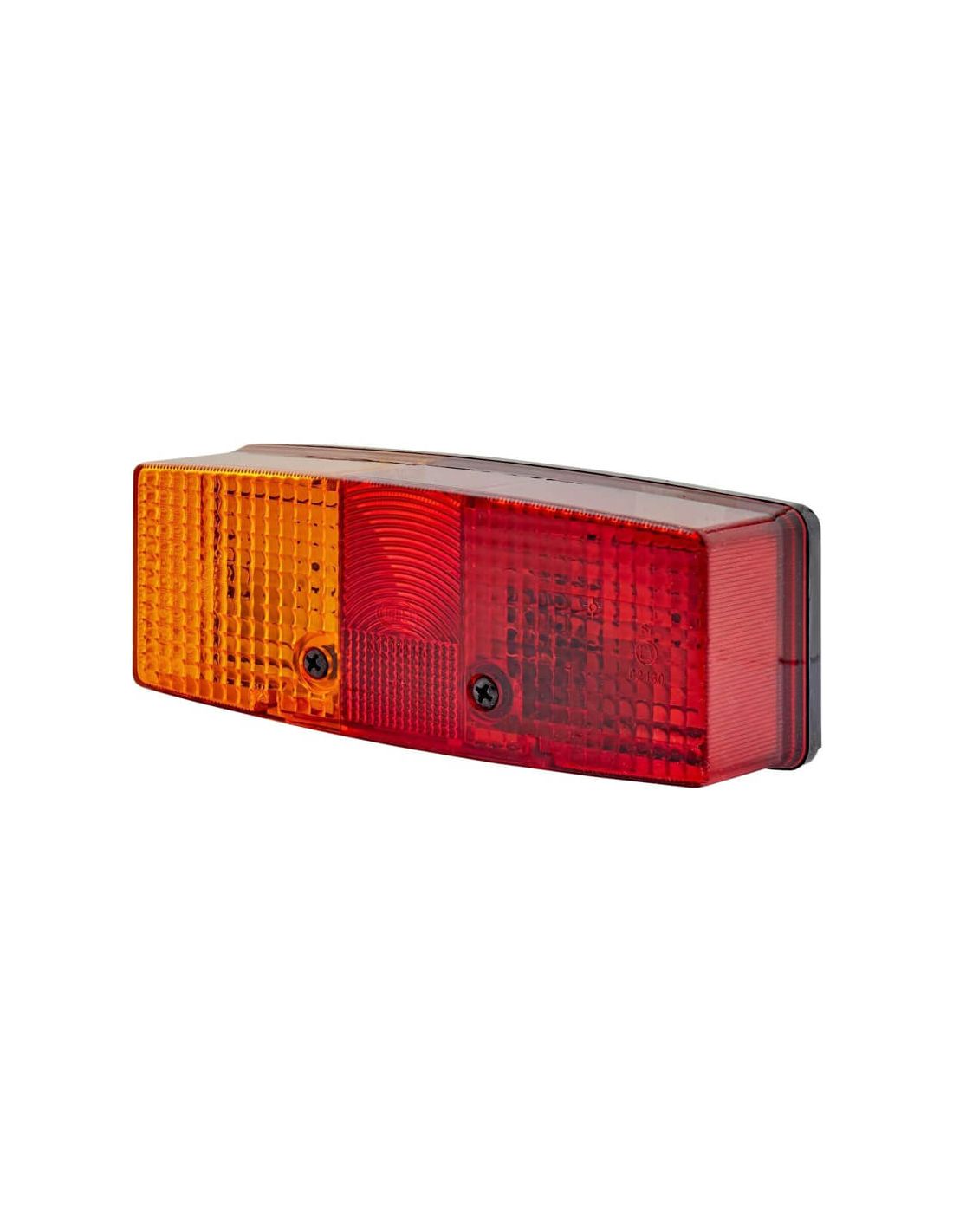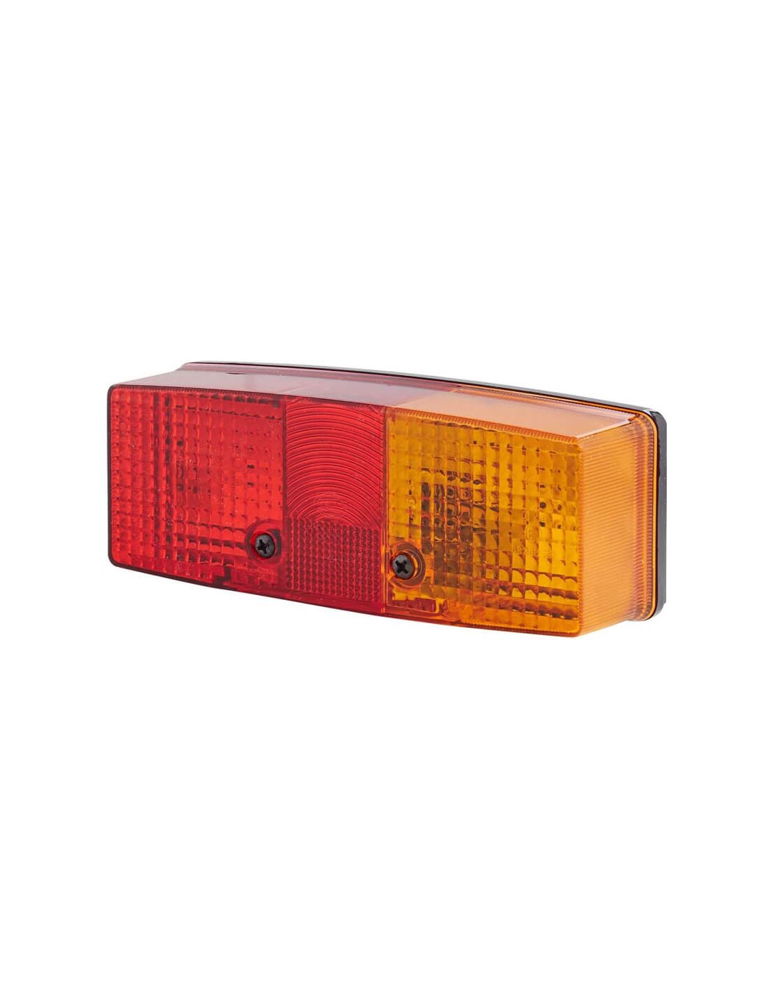Este modelo opera com 24/12 V e aceita lâmpadas P21W/R10W (não incluídas). Possui uma carcaça de plástico preta resistente e uma lente vermelha/amarela, com montagem externa por parafuso. Oferece três funções de iluminação traseira : luz de freio, luz de estacionamento e seta.