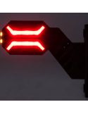 Reboque curvo com corte de LED Medidor Dragon de 3 funções com luz de posição frontal branca, luz traseira vermelha e âmbar na lateral, tanto na frente quanto atrás o holograma da marca Horpol ilumina, inclui meio metro de cabo para instalação . Códigos de aprovação gravados SM1, AM e RM1 e R10.