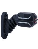 Marcador lateral curto curvo de LED para reboque com 3 funções , luz traseira vermelha, luz frontal branca e luz lateral âmbar, tanto as luzes dianteiras quanto as traseiras iluminam e dentro com algumas linhas que se apagam em uma cor transparente na frente, vermelho na traseira e lateral amarela, pode ser instalada em 12 Volts e 24 Volts e possui cabo de 0,5 metros para instalação. Totalmente impermeável e submersível e flexível.