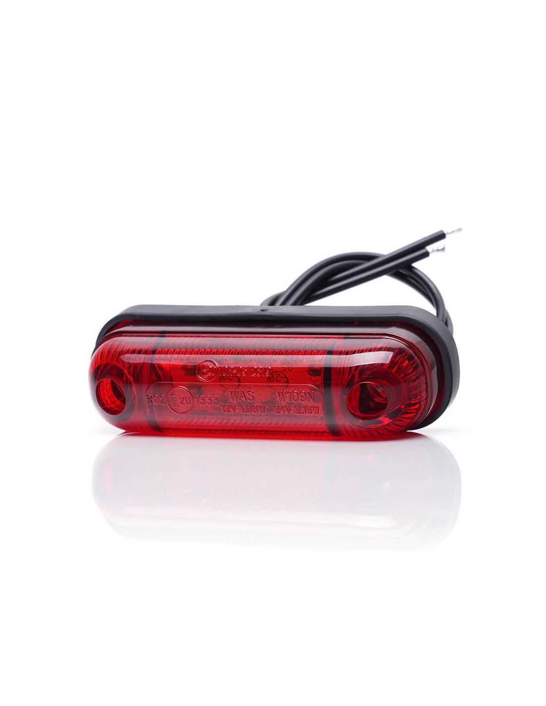 Luz de freio traseira LED W258 12V , categoria S3, com lente vermelha e cabo de 25 cm. Aprovado pela ECE e resistente ao IP6K9K para veículos comerciais.