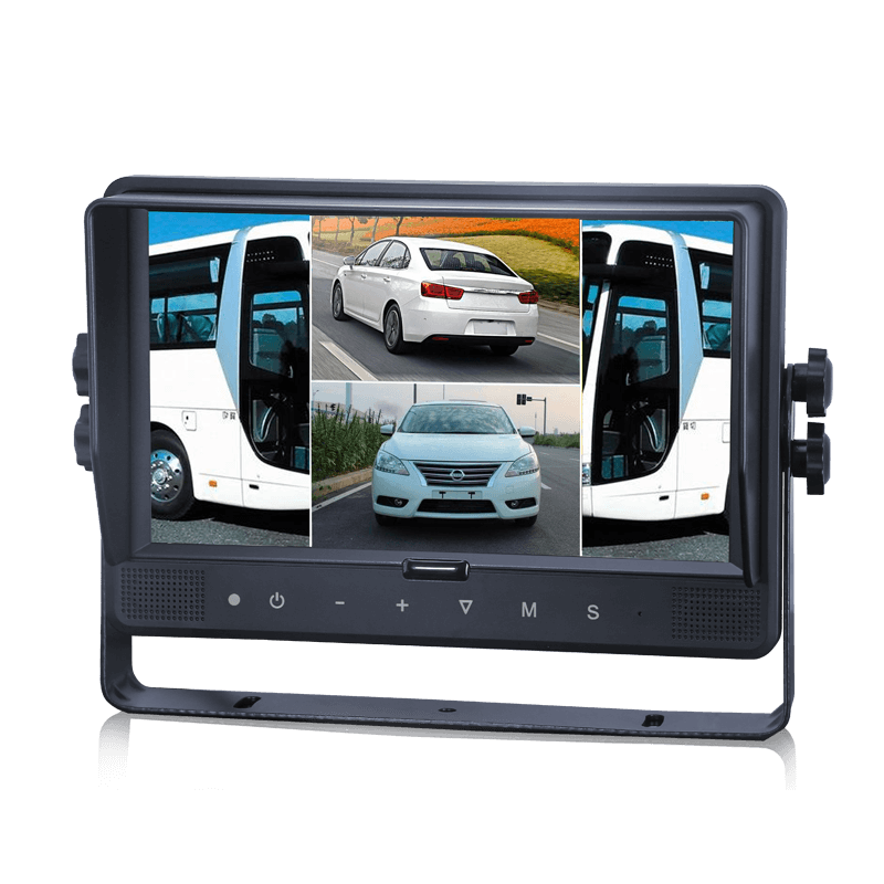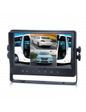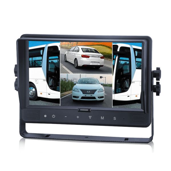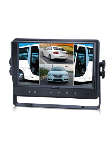 Monitor touch HD 10.1" de alta resolução para instalação de 4 câmeras retrovisoras , com botões touch embutidos e controle remoto incluso. Inclui cabo de força, protetor solar e suporte de fixação com parafusos, inclui também suporte central. Funciona com tensões de 10V a 32V .O monitor possui entrada para 4 câmeras para visualização simultânea e também incorpora alto-falante.