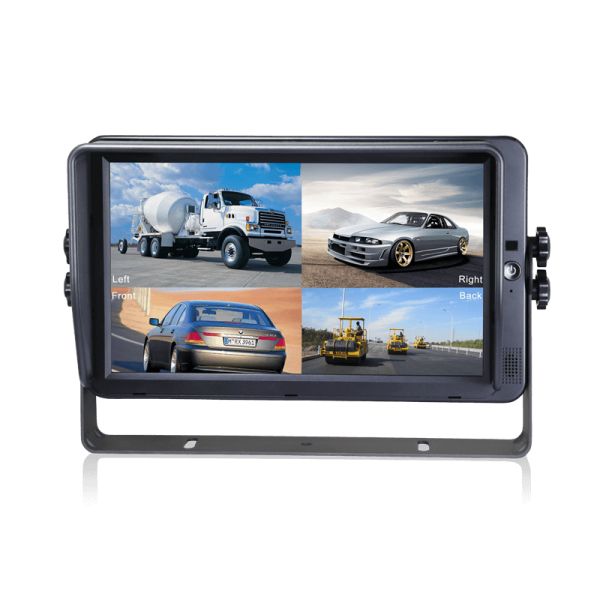 Monitor touch HD 10.1" de alta resolução para instalação de 4 câmeras retrovisoras , com botões touch embutidos e controle remoto incluso. Inclui cabo de força, protetor solar e suporte de fixação com parafusos, inclui também suporte central. Funciona com tensões de 10V a 32V .O monitor possui entrada para 4 câmeras para visualização simultânea e também incorpora alto-falante.