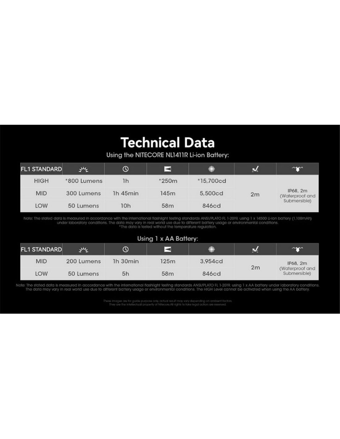 Lanterna portátil MT1A Pro LED ultraleve e recarregável com potência máxima de 800 lúmens e alcance de 250 metros. Compatível com baterias AA e bateria recarregável de íons de lítio. Com certificação IP68 , é submersível até 2 metros e perfeito para caminhadas, camping e uso tático.