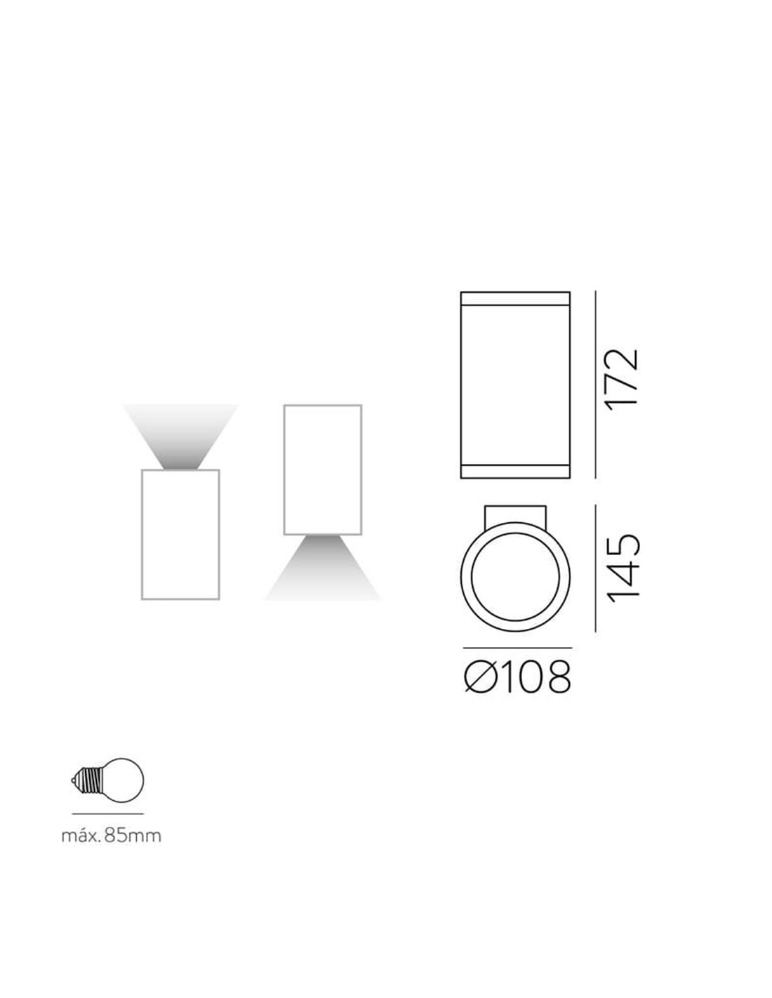 A luminária de parede externa NORI é ideal para uma ampla gama de aplicações externas. Perfeito para iluminar entradas, pátios, terraços, jardins e qualquer outro espaço exterior que requeira uma iluminação resistente e eficaz. O seu design elegante e funcional torna-o uma excelente opção para melhorar a segurança e a estética dos espaços exteriores.