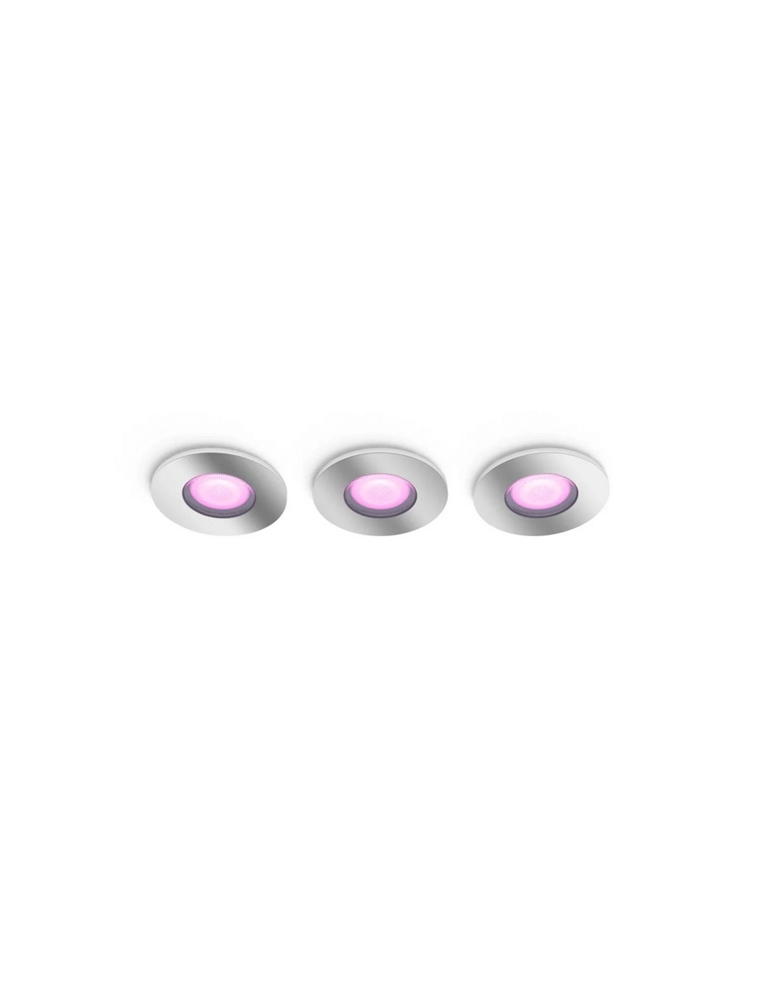 Pacote com 3 holofotes LED inteligentes embutidos cromados Xamento 3x4,2 W : transforme sua casa com iluminação inteligente. Cada lâmpada oferece 16 milhões de cores e tons de branco (2000–6500K), controláveis via Bluetooth ou pela Hue Bridge para recursos avançados. Com classificação IP44 , são ideais para banheiros e áreas molhadas. Seu design cromado moderno combina perfeitamente com qualquer decoração. Eles exigem um diâmetro de corte de 70 mm e têm um diâmetro externo de 93 mm.