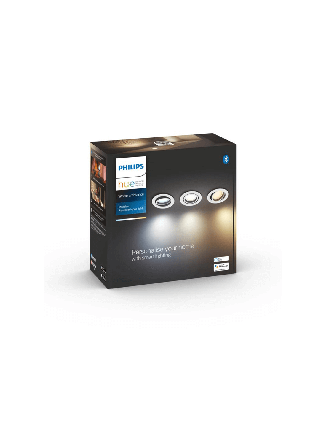Os focos embutidos Philips Hue White Ambiance com 3 pacotes em Milliskin em branco se encaixam como uma luva em interiores modernos e oferecem luz branca quente a fria regulável que você pode controlar remotamente com Bluetooth. Descubra mais recursos de iluminação inteligentes adicionando um Hue Bridge -vendido separadamente-.