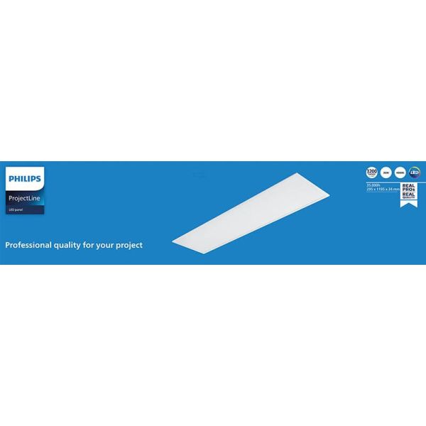 Se procura um Painel LED 120 X 30Cm, este Painel ProjectLine da Philips consome apenas 34W e a sua intensidade luminosa é de 3.400Lm, o equivalente a mais de 220W dos antigos. A duração deste Painel é superior a 35.000 Horas e a garantia oferecida pela Philips é de 3 anos.