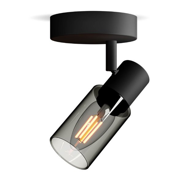 Spot de teto/parede PALMS com elegante vidro alongado preto fumê , compatível com lâmpadas E14 (não incluídas) . Fácil instalação com sistema ClickFix , ideal para dar um toque sofisticado a qualquer espaço.