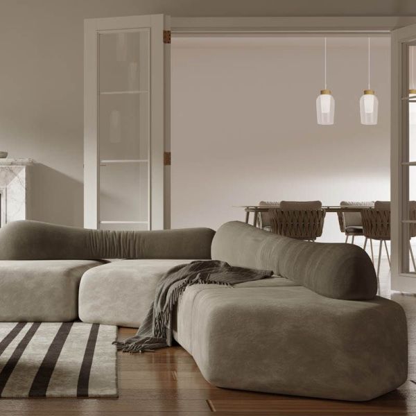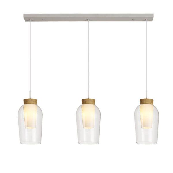 O candeeiro suspenso Nora 3L é composto por dois difusores de vidro (um mate e outro transparente), que se apoiam numa base de madeira num acabamento natural muito acolhedor , contemporâneo e fresco para a decoração de interiores. Tem dimensões de 108 cm de comprimento, 18 cm de largura e 38,7 cm de altura. A altura máxima de instalação ajustável é de 230 cm.
