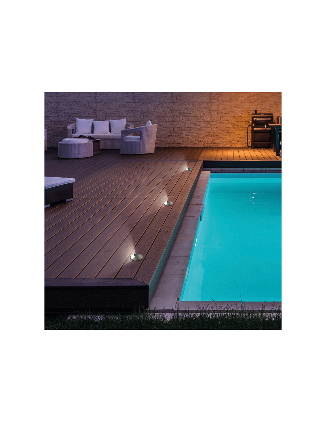 O plafon de encastrar Indus com corpo esférico em alumínio e vidro não só ilumina de forma eficiente, como também decora qualquer espaço de forma moderna e com grande facilidade. Além disso, oferece grande resistência graças à sua certificação IP67 e IK08 , à prova de poeira e imersão por 30 minutos.