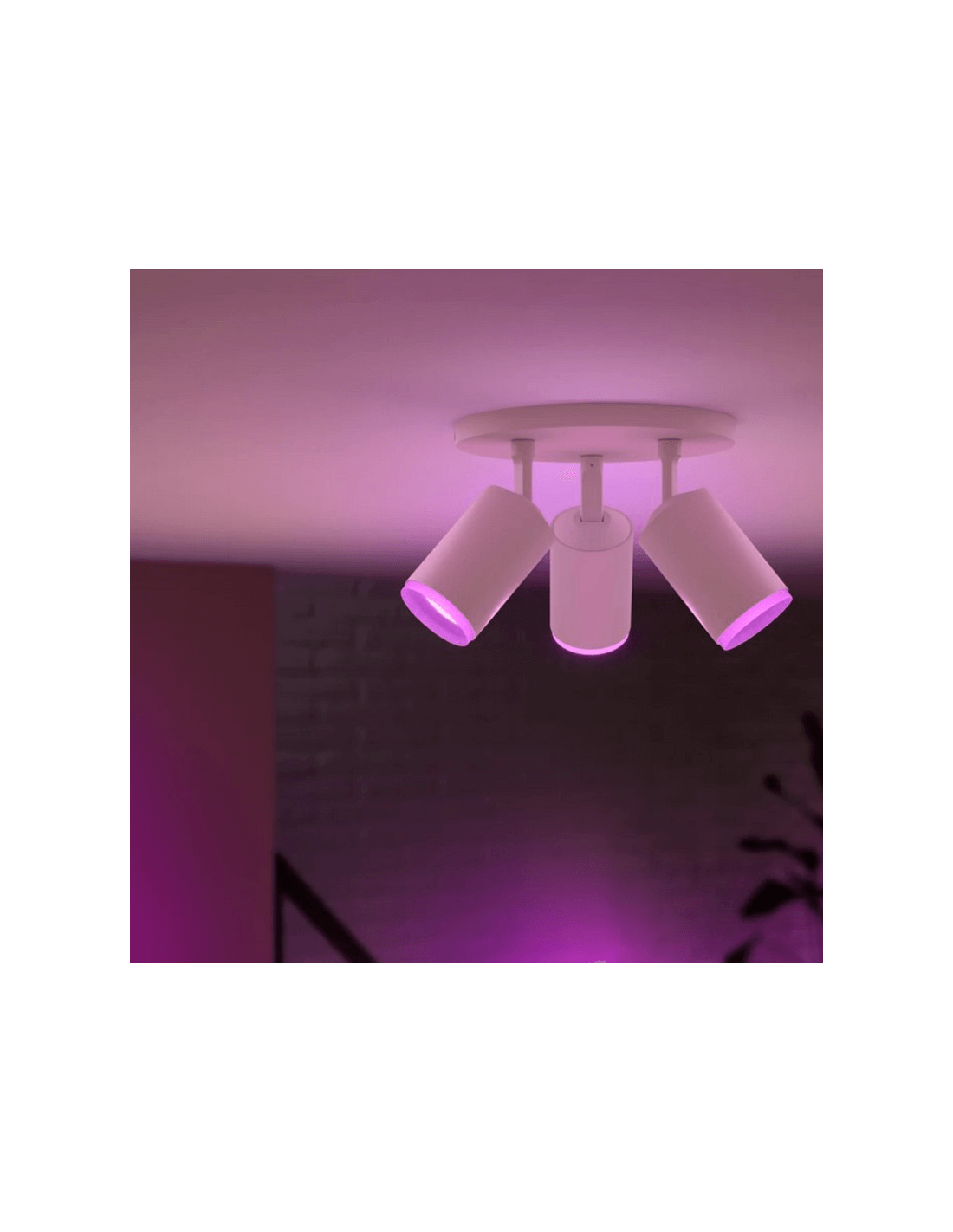 O plafon inteligente Philips Hue FUGATO com 3 focos LED em acabamento branco combina um design moderno com a versatilidade da iluminação inteligente. Permite ajustar a temperatura da cor desde uma luz quente de 2.000K até uma luz fria de 6.500K, além de oferecer milhões de cores para se adaptar a diversas atividades e ambientes. Os seus três focos reguláveis facilitam o direcionamento da luz para zonas específicas, ideais para realçar elementos decorativos ou criar ambientes acolhedores.