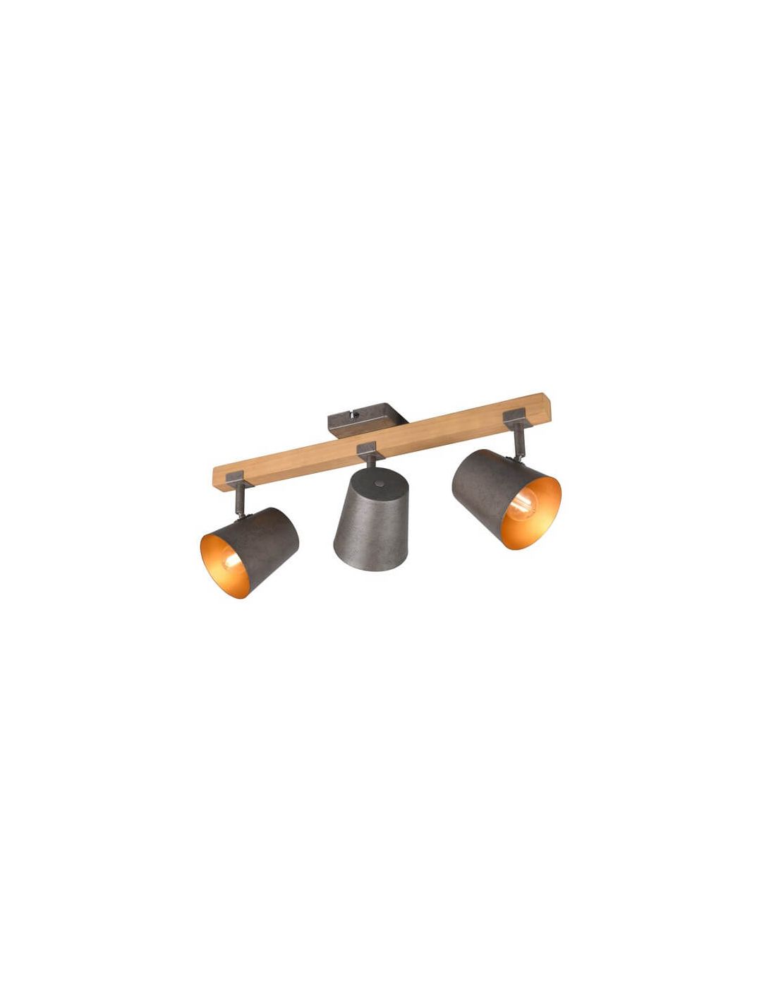 BELL Plafon LED 3 luzes, madeira e metal, focos ajustáveis IP20