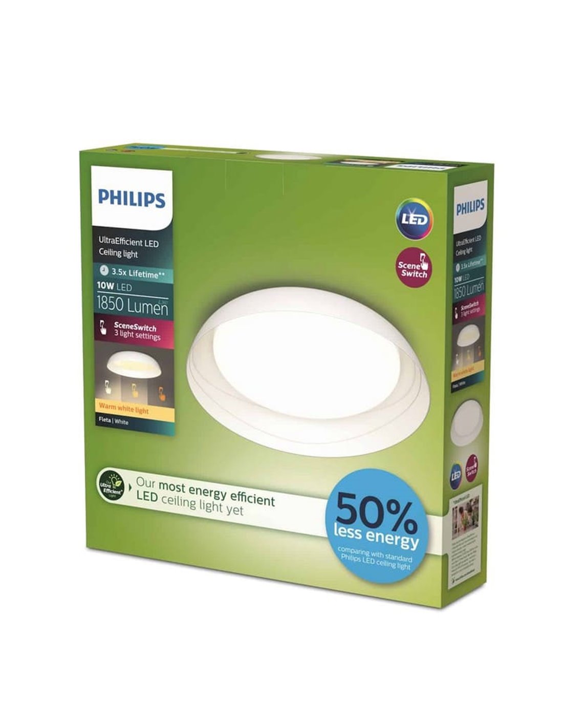 A luminária de teto LED Ultra Eficiente Philips Fleta foi projetada para oferecer máxima eficiência energética e iluminação adaptável. Com sua potência de 10W, oferece iluminação ideal em qualquer ambiente da sua casa ou local de trabalho.