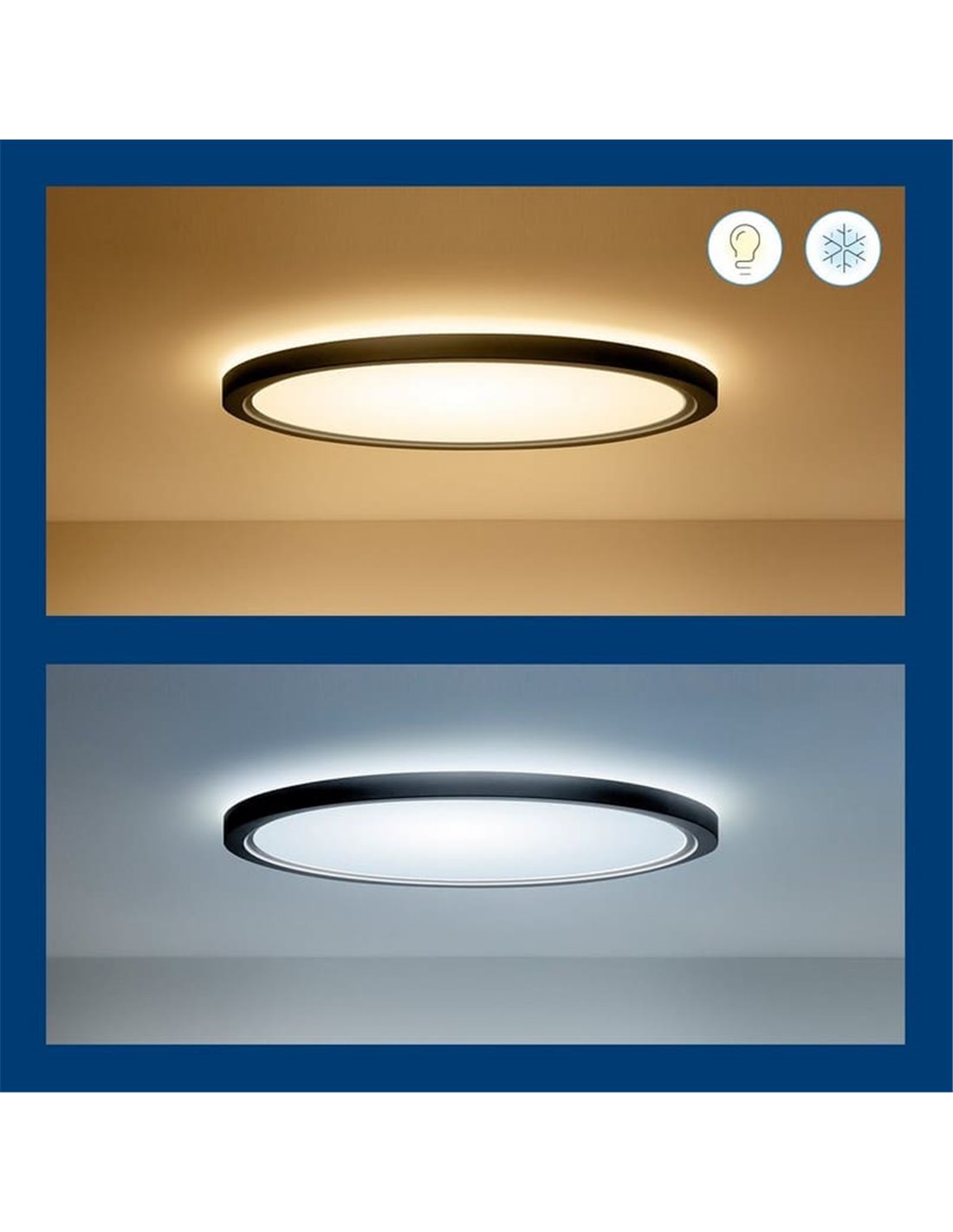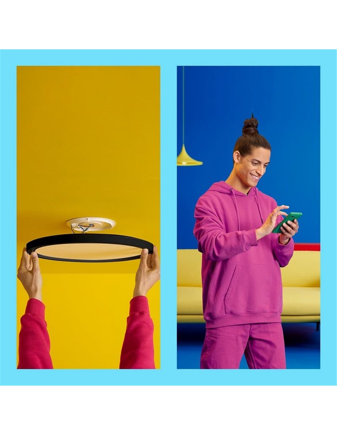 O plafon LED Superslim WiZ 22W ilumina com tecnologia LED , potência de 22W e fluxo de 2.600 lúmens , para oferecer temperatura de cor ajustável de 2.200K – 6.500K e opção de cor RGB. Selecione o melhor tom de iluminação com base no seu humor. Para aproveitar todas as suas vantagens você só precisa de um dispositivo Smart Home compatível. Você pode controlar sua iluminação usando seu smartphone com o aplicativo Wiz. Possui certificação IP20 (proteção contra corpos maiores que 12 mm) para uso exclusivo em ambientes internos. Tem garantia de 2 anos.