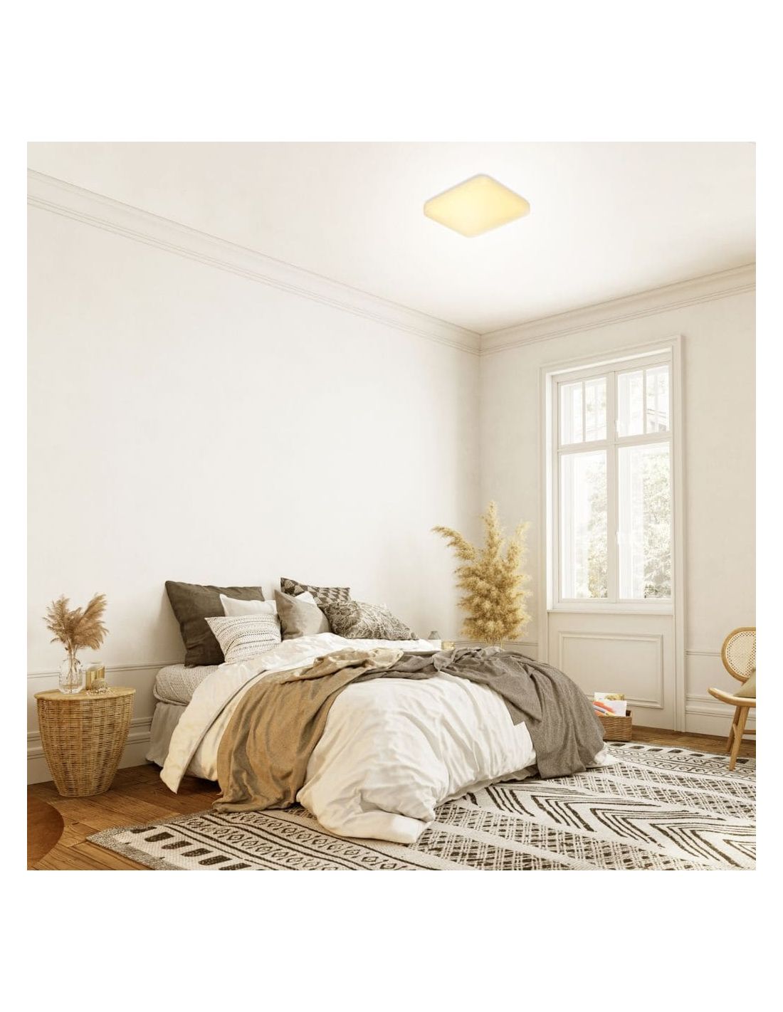 Esta luminária de teto quadrada em LED é perfeita para instalação em cozinhas, salas de estar, quartos ou qualquer cômodo onde não seja possível instalar uma luminária embutida. Graças ao seu design leve, é recomendada para tetos que não suportam cargas pesadas.