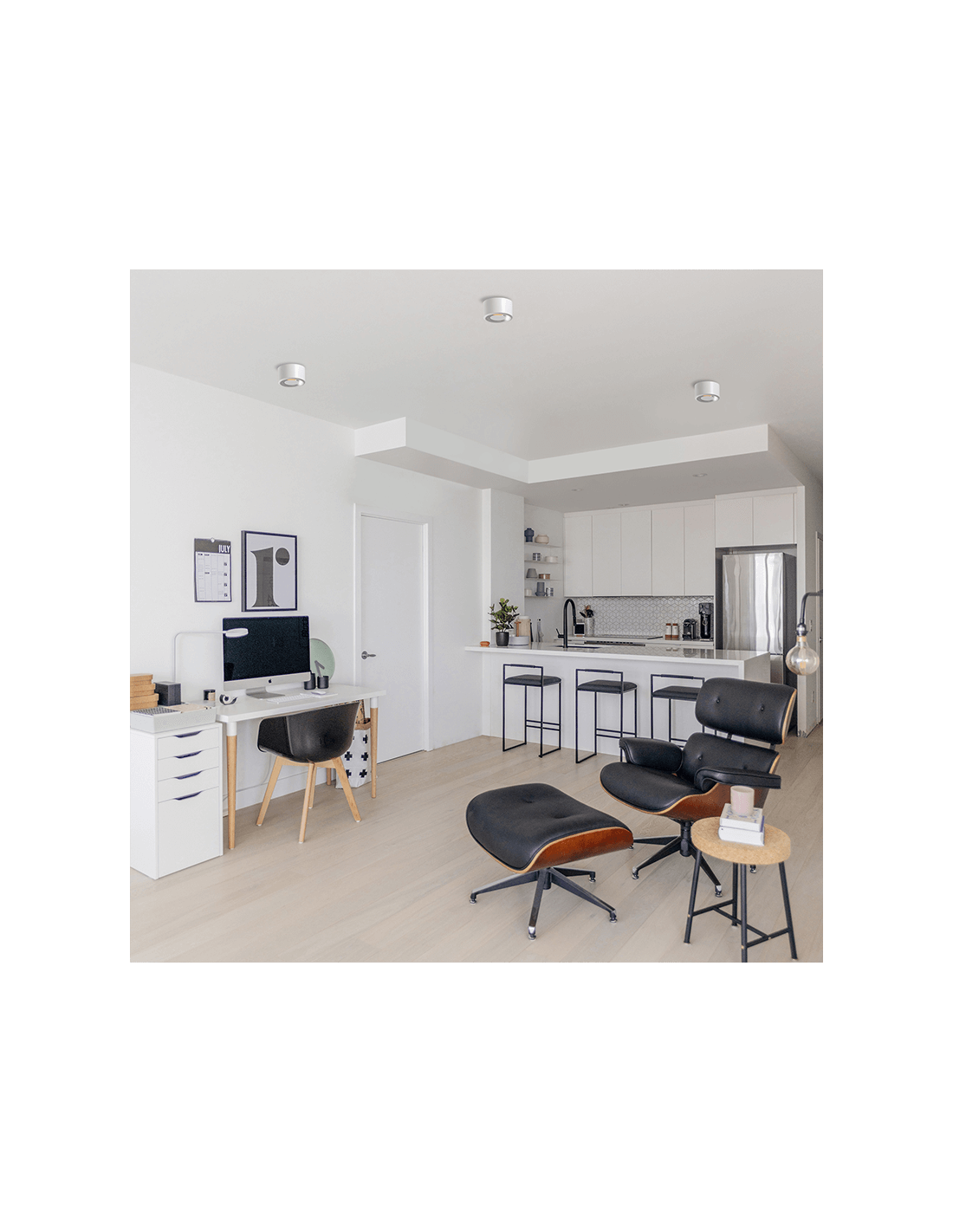 Studio é um plafon de 9 cm perfeito para quem deseja iluminar com potência, economizar no consumo de energia e decorar com um estilo moderno. Está disponível em branco ou preto e duas potências, para que possa fazer o melhor jogo de iluminação em cada espaço.