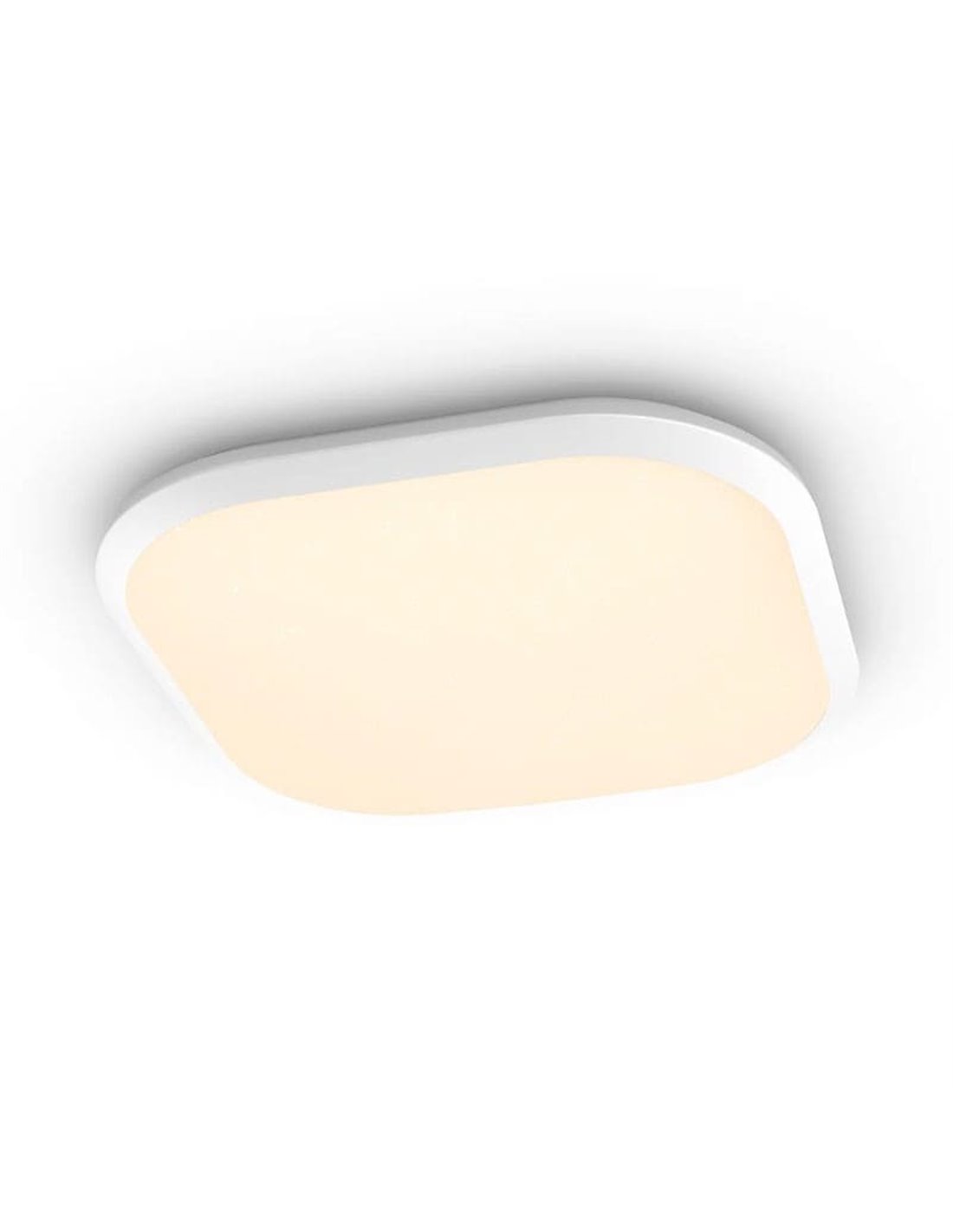 O plafon LED quadrado CANAVAL da Philips combina eficiência energética e funcionalidade, proporcionando uma iluminação quente e uniforme em espaços interiores. O seu design minimalista em branco e quadrado torna-o adequado para vários ambientes da casa.