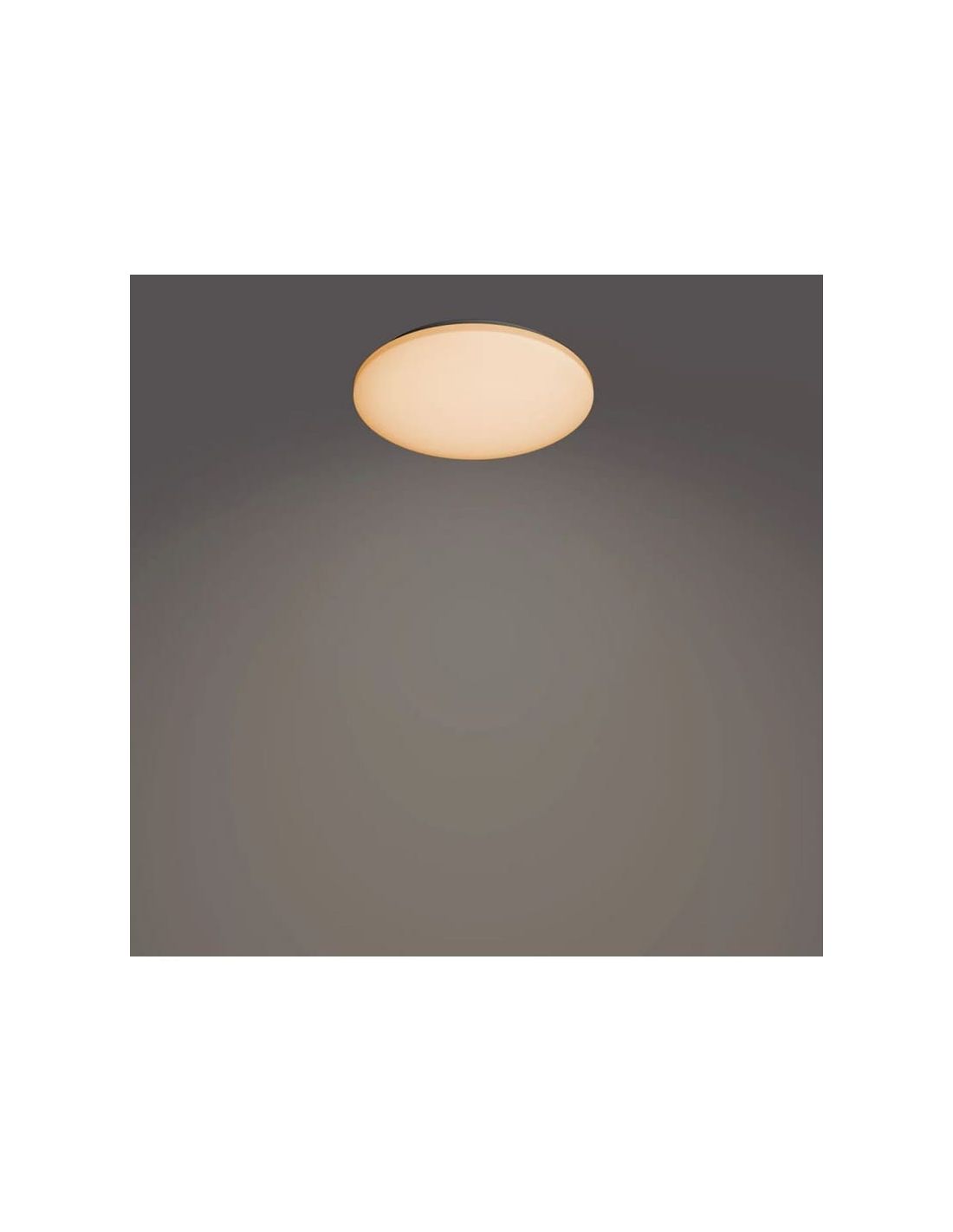 Uma das principais vantagens deste plafon é o dimmer sem fio, que permite controlar a intensidade e a cor da luz de qualquer lugar . No conforto do seu sofá ou mesmo antes de chegar a casa, ajuste a iluminação de acordo com as suas necessidades e preferências.
