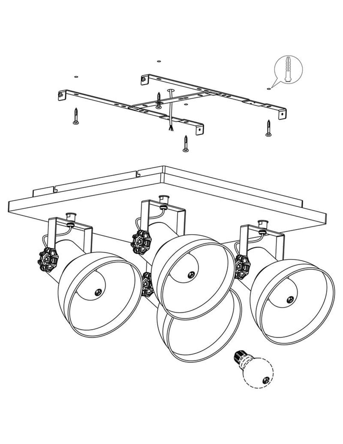 Plafon Quadrado BARNSTAPLE da EGLO - Estilo Industrial com 4 Refletores Móveis