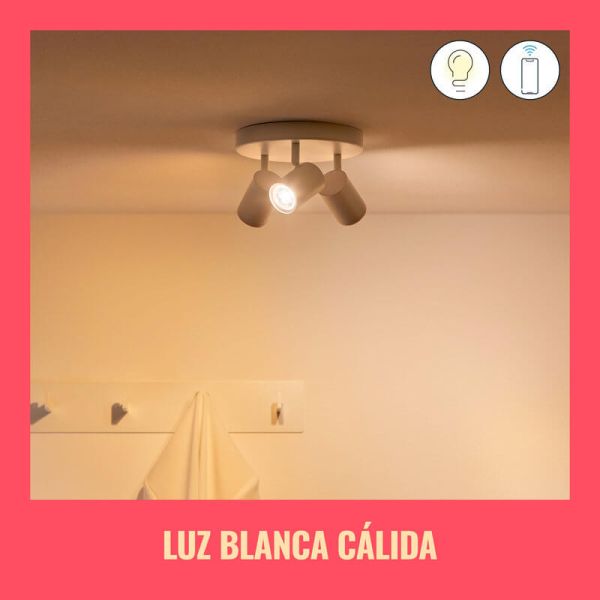 Desfrute de três focos ajustáveis num elegante plafon circular feito de metal que oferece muitas opções divertidas para inundar a sua divisão com uma bela luz e cor. Escolha uma cena de luz para uma atividade específica com nosso acessório Build-on Spots ou deixe nosso aplicativo cuidar de tudo com rotinas automatizadas. Possui as seguintes dimensões: altura de 12,3 cm, comprimento de 21 cm, largura de 21 cm e peso líquido de 1 kg.