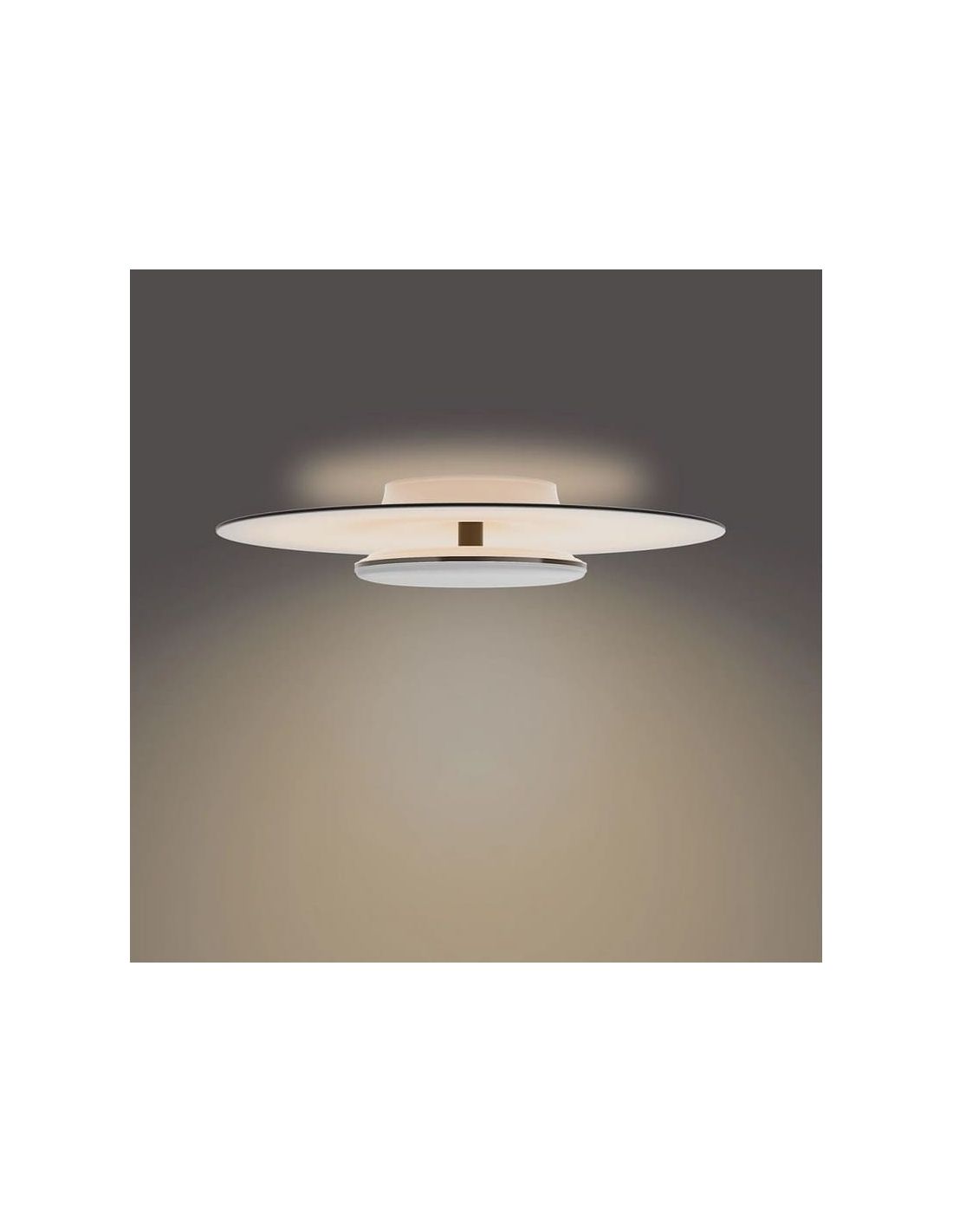 Aproveite a flexibilidade da iluminação de zona tripla , dando-lhe a liberdade de criar a atmosfera perfeita para cada ocasião. Desde momentos de relaxamento até reuniões sociais, este plafon oferece uma combinação harmoniosa de luz direta e indireta que espalha um brilho quente e uniforme por todo o espaço, sem ofuscamento incômodo.