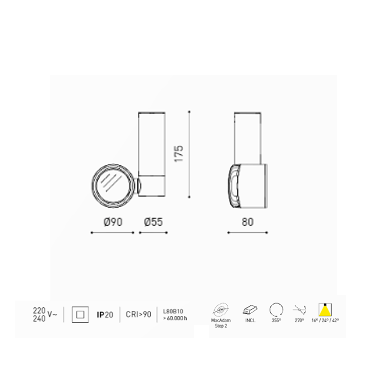 Projector LED de superfície ajustável Zen Tube Surface 12W