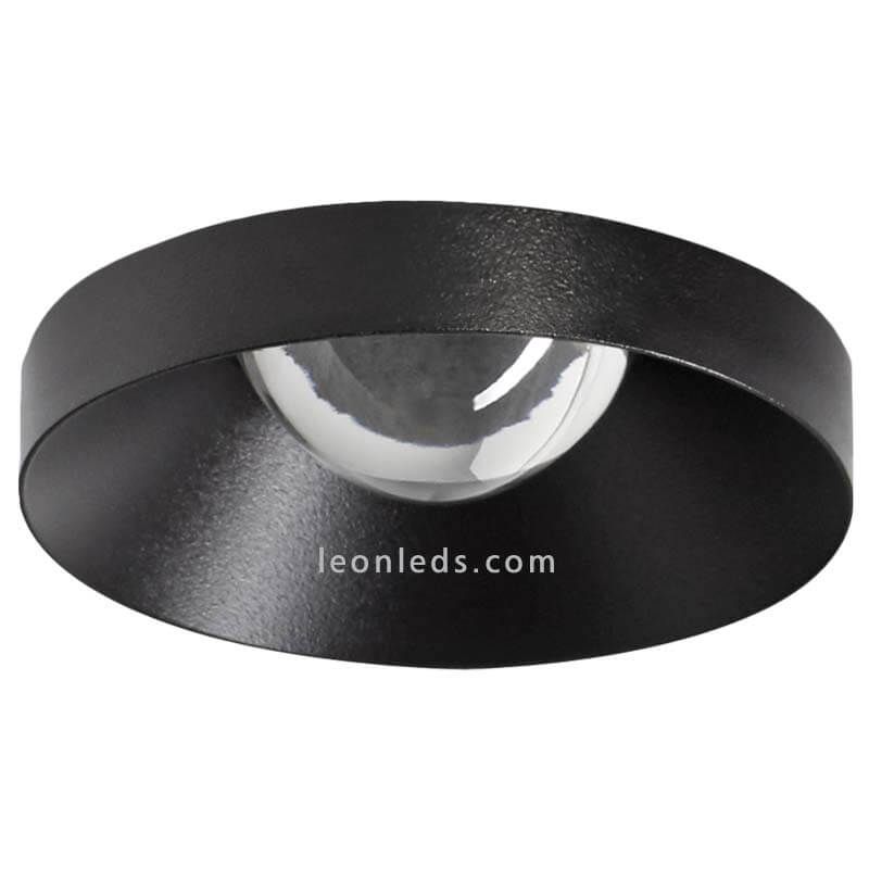 Puck LED Recessed da Arkos Light tamanho L na cor preta (RAL 9005) com potência de 12W, ângulo de feixe de 47º e disponível em 3 tons de luz, 2700K, 3000K e 4000K com CRI>90 e UGR>19, montagens nivele em um orifício redondo de 8,6 cm de diâmetro.