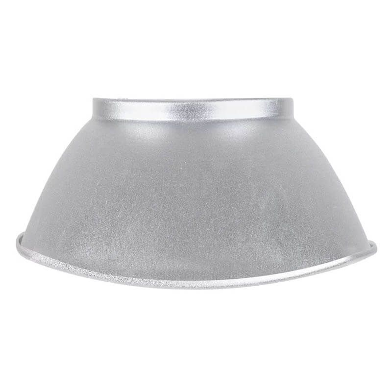 Refletor para instalar em LED High Bays da marca LedVance, válido para 87W, fabricado em alumínio prateado. Seu diâmetro é de 41,5 cm e sua altura é de 20,5 cm.