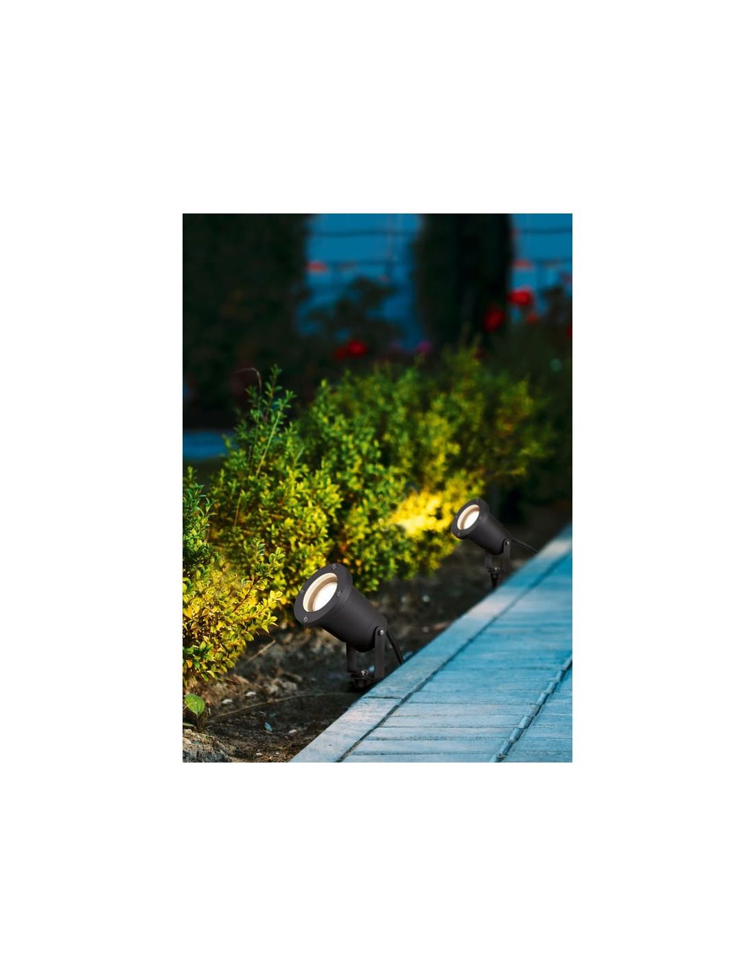 Com um design prático e versátil, os refletores UBANGI vêm com um cabo de alimentação de cinco metros de comprimento e um espigão para fixá-los facilmente no solo do seu jardim . Isso permite que você os coloque onde quiser, destacando características específicas da paisagem ou criando uma atmosfera acolhedora em sua casa.