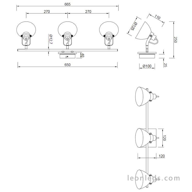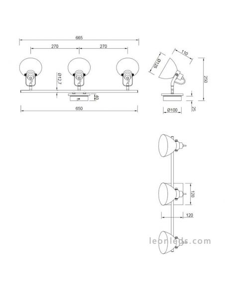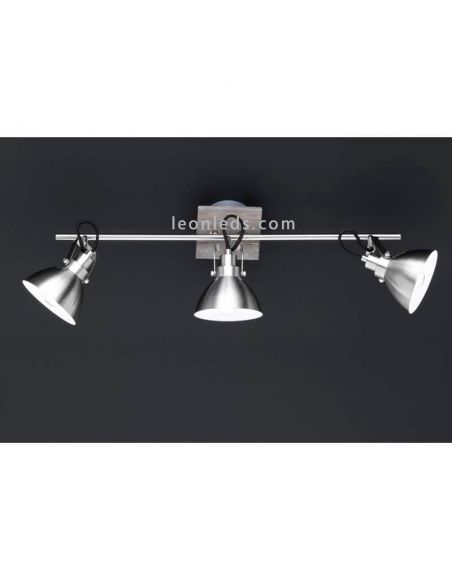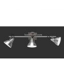 Completa 3 centros industriais cor da cor Amigo de Nickel de Iluminação de Trio, um spruce perfeito para instalar na parede ou teto interior com um estilo industrial. É isto. regleta 3 focos orientados projeto industrial requer a instalação de 3 lâmpadas LED com rosca E14 (NO INCLUDED), apenas lâmpadas LED podem ser instaladas com rosca E14. Graças à parte orientada, podemos transformá-la para iluminar a área desejada. As dimensões podem ser vistas em uma das fotos e o interior da caixa inclui o manual de instalação, os tacos e os parafusos, é muito simples de instalar.