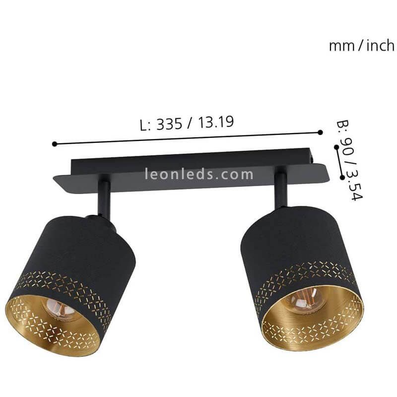 Telhado com 2 bolsos redondos de tecido preto e ouro da coleção Esteperra Iluminação do Eglo. Oferece um estilo moderno e contemporâneo ideal para qualquer quarto que requer iluminação e precisa de um toque moderno e elegante. Necessidades de instalar 2 lâmpadas com caixa E27 (não incluído). Recomendamos o uso de uma lâmpada de filamento LED tipo Globo para melhorar seu estilo vintage. PReferindo-se a um tom quente como o 3000k que irá melhorar esse efeito moderno. A potência recomendada é de 10 a 17W dependendo das dimensões da estadia que precisamos para iluminar.
