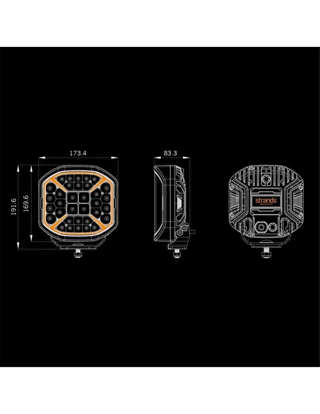 A lanterna Strands Siberia X Driving Light de 7" oferece desempenho excepcional com seu feixe otimizado. Ela gera até 7.430 lm reais no modo X (1.640 lm no modo E), iluminando efetivamente até 620 metros no modo completo ou 308 metros no modo estendido.