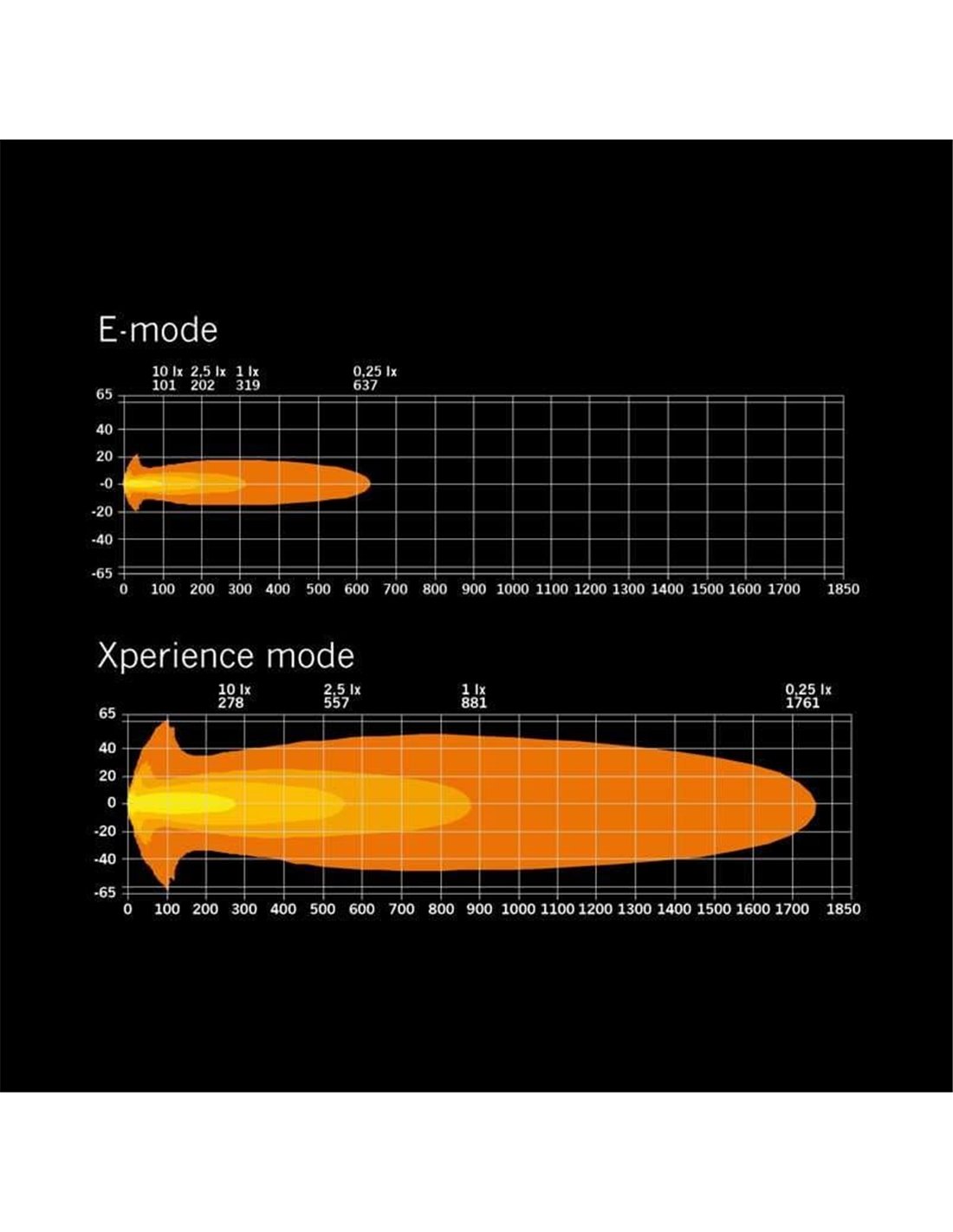 - Fluxo luminoso: 1.430 lm no modo E / 13.350 lm no modo X