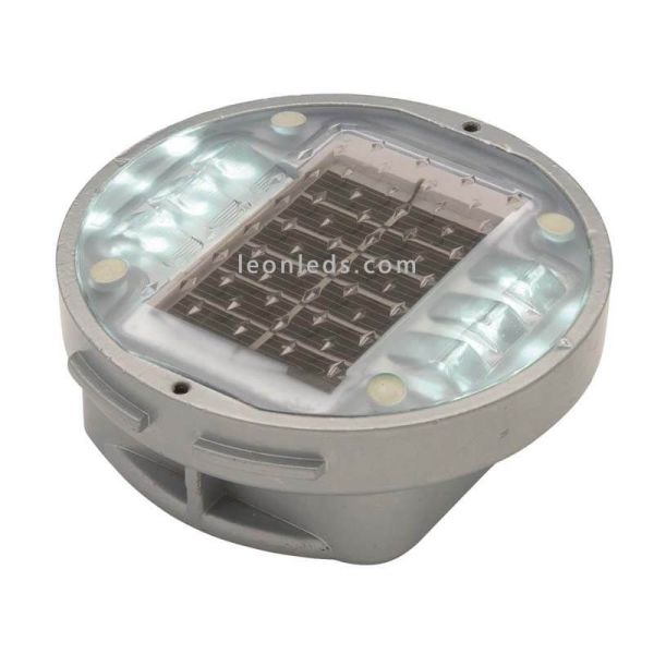 Sinalização de estrada LED solar disponível com luz branca e luz âmbar (A (Aristal ambar) e com luz fixa ou com luz flash, você pode selecioná-lo antes de comprar, é perfeito para instalar em solo externo sem a necessidade de instalação elétrica, uma vez que é carregado com luz solar, sua energia é 0,69W, oferece um grau de proteção contra água e poeira IP68 e uma resistência de impacto de IK10, permite que você passe veículos até 19.000Kg. Este modelo Mitra emite luz apenas de um lado, 3 leds.