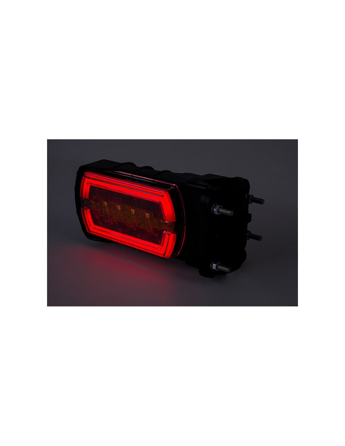 Este modelo oferece três funções essenciais para garantir a máxima visibilidade: uma luz de posição traseira com efeito neon , uma luz de freio reativa e um potente indicador traseiro . Equipado com 32 LEDs de alto desempenho , garante uma iluminação intensa e uniforme com consumo mínimo de energia em sistemas elétricos de 12 V ou 24 V.
