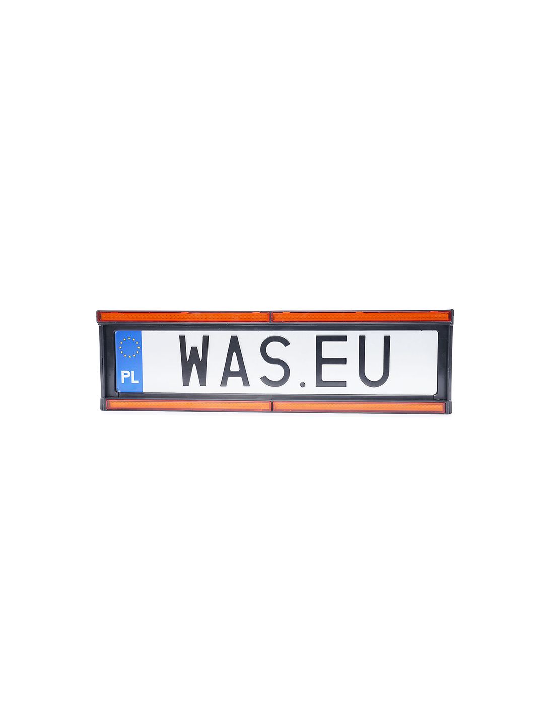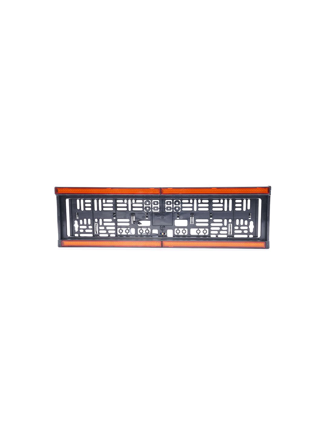 Suporte de placa de LED W253 com luz branca para placa e luz de advertência âmbar integrada. Opera em 12 V e 24 V , é homologado, feito de materiais duráveis e equipado com LEDs de baixo consumo . Ideal para veículos comerciais e reboques, com luz de advertência âmbar superior ou inferior e luz de placa.
