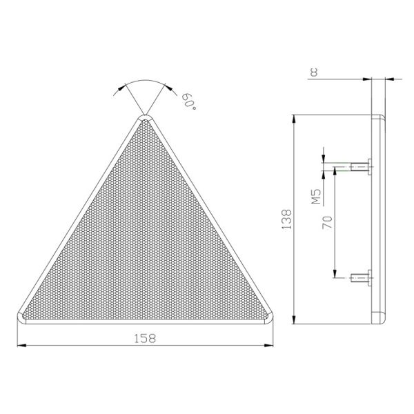 Triângulo reflector homologado com parafusos para instalar na parte traseira de reboques, a instalar por meio de 2 parafusos já incluídos, as dimensões podem ser vistas numa das fotos.