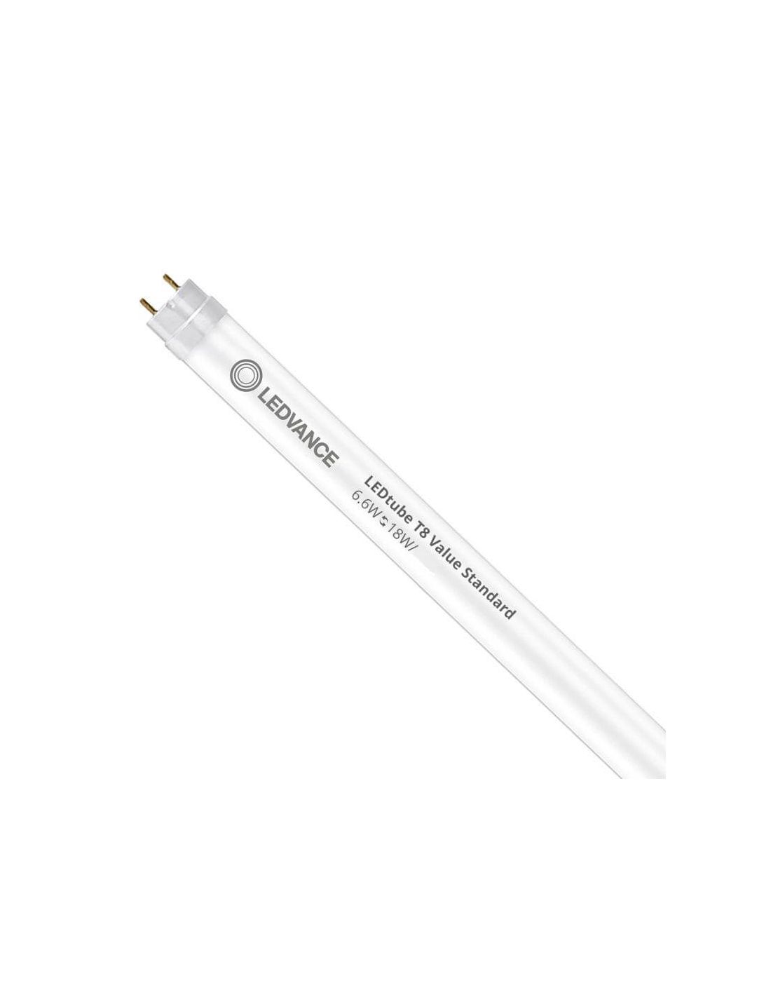 Tubo LED EM - G13 T8 de 60Cm com potência de 6,6W equivalente a 18W dos tubos convencionais, intensidade de 800Lm e ângulo de feixe de luz de 190º. Este tubo LED tem vida útil de 30.000 horas e pertence à linha LedVance Value Class com garantia de 3 anos.