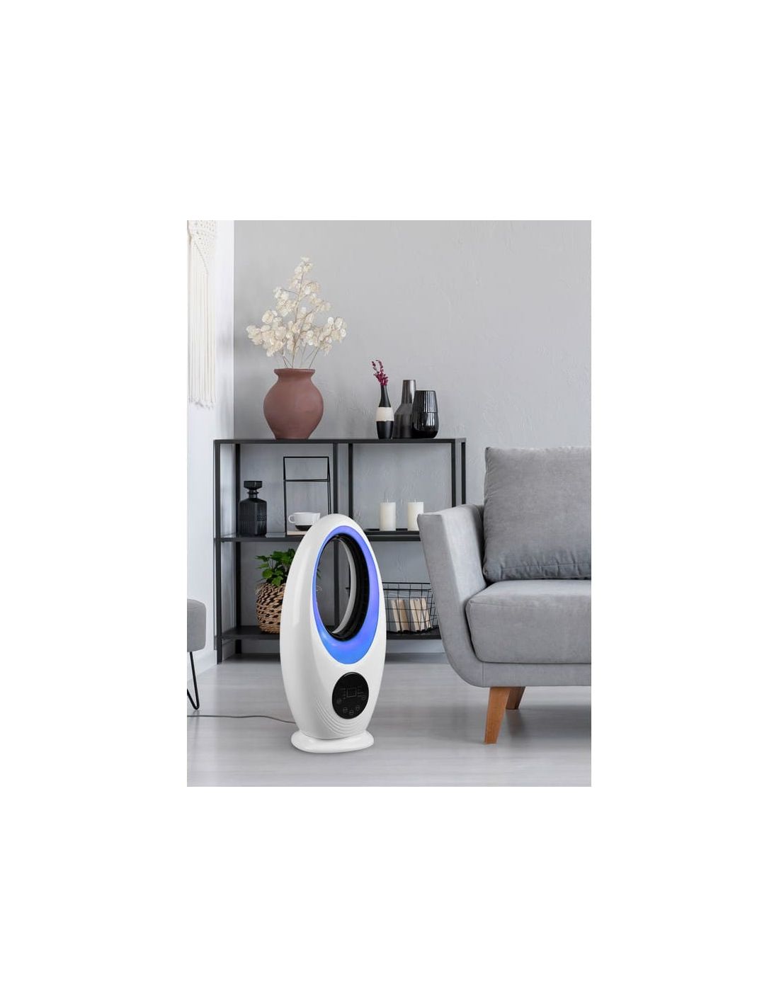 Seu controle remoto permite controlar convenientemente todas as funções, incluindo o temporizador e o trocador de cores RGB integrado , que adiciona detalhes de luz atmosférica para se adequar a qualquer ocasião. Com um design moderno em preto e branco, o KALMAR não é apenas funcional, mas também esteticamente atraente.