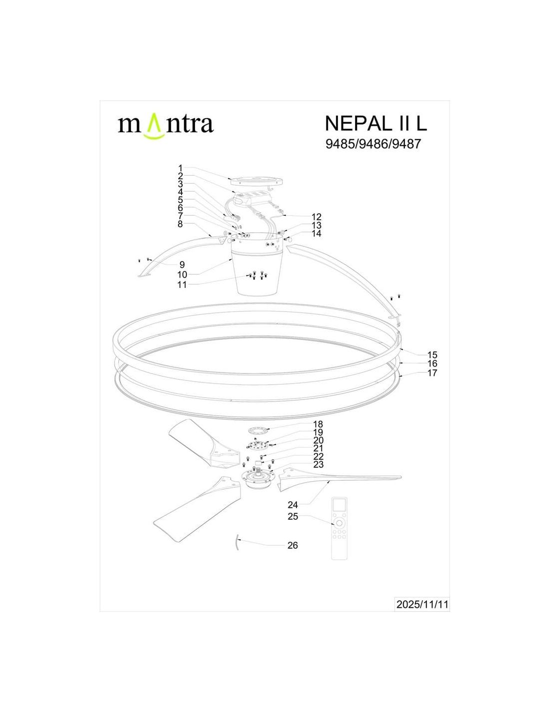 Ventoinha de teto com luz LED branca NEPAL II, 32W regulável, 2700K-4000K-5000K, Ø 75cm