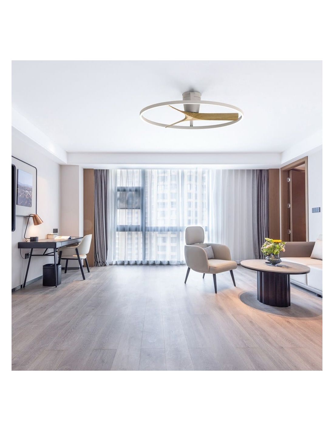 Ventoinha de teto plafon LED ONA branco madeira Ø700mm 18W 2520lm CCT 3000-5000K motor DC