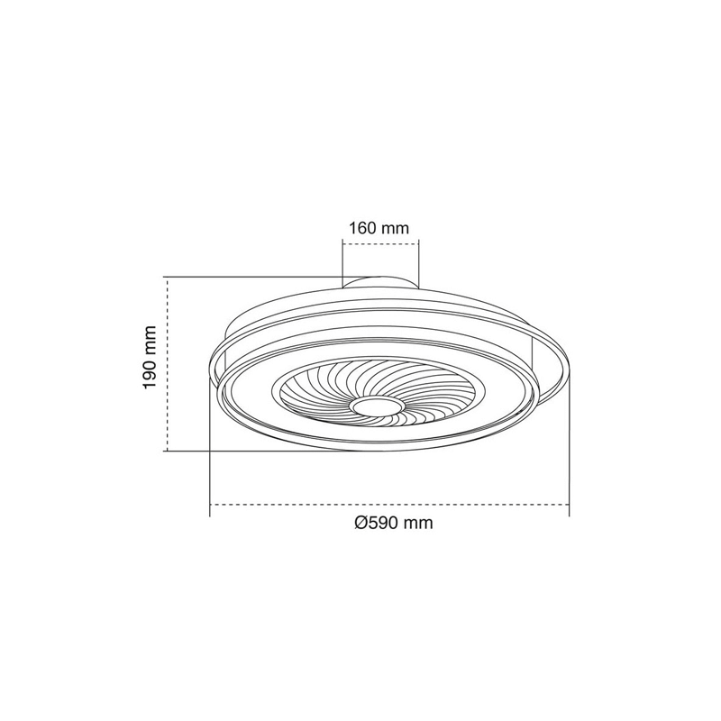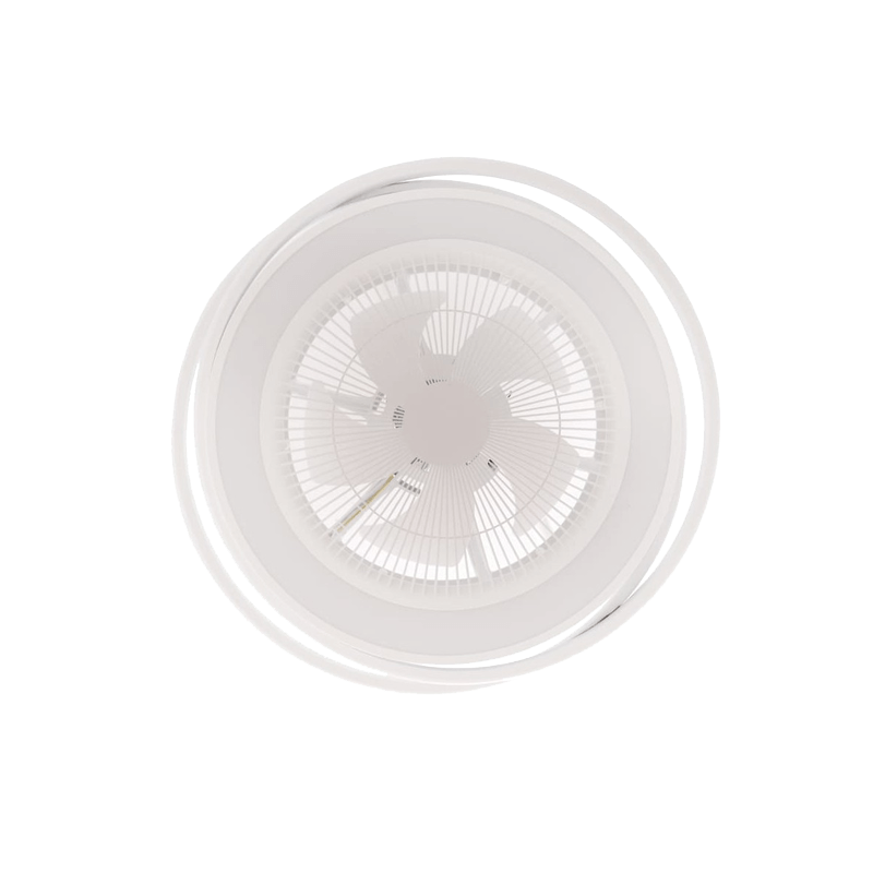 Este modelo tem um motor CA de 3 velocidades e controlo de temperatura que pode variar entre tons quentes, neutros ou energéticos (3000, 4000 e 6000), o que se adapta a qualquer situação. Tem também duas fontes de luz, que trabalham em conjunto. A luz principal fornece um fluxo de 3000 lúmenes, enquanto que o segundo ponto de luz, que envolve o ventilador, fornece uma iluminação muito agradável, bem como decorativa.