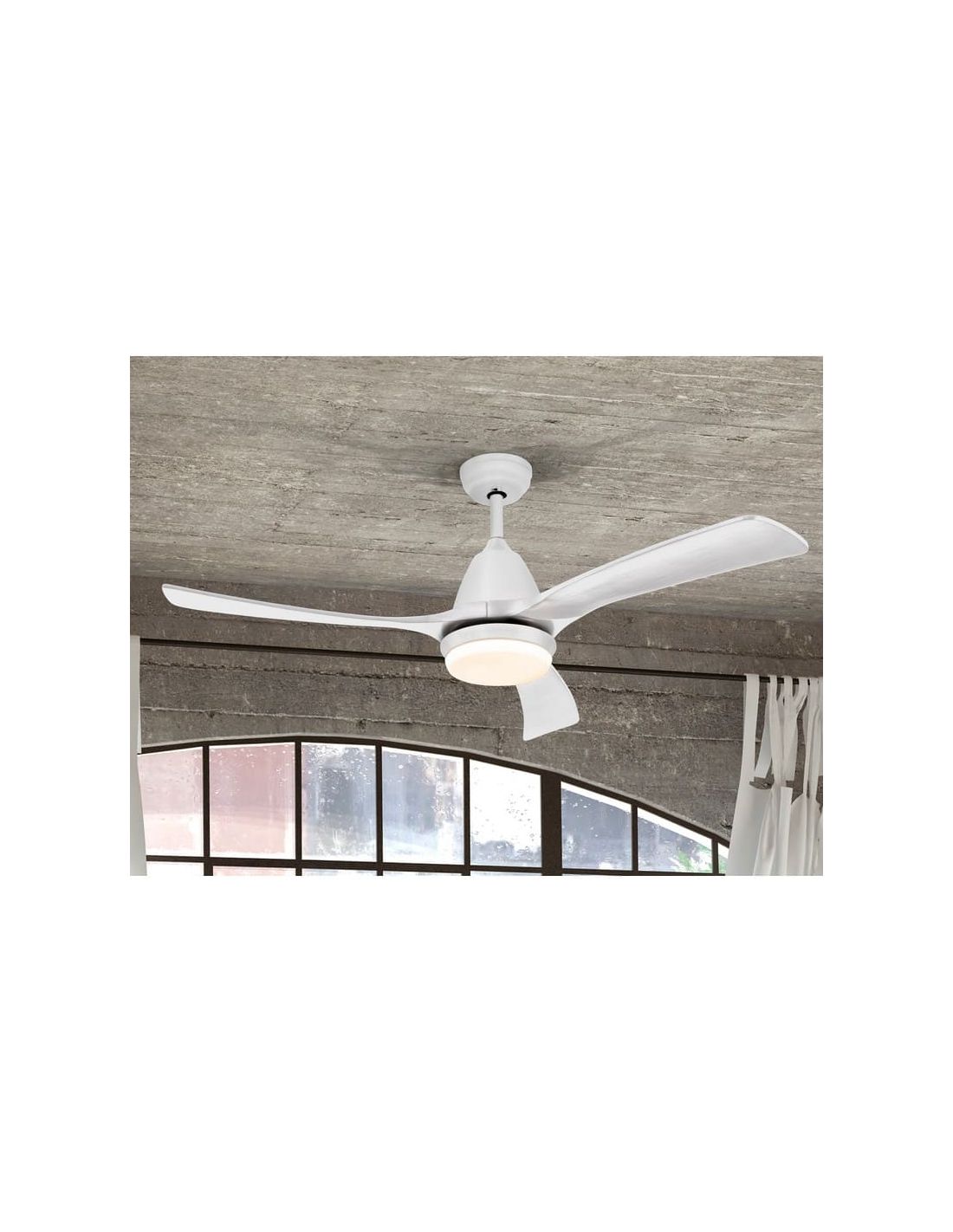 Conheça nosso moderno ventilador de teto com luz LED, aliando elegância e funcionalidade. Com acabamento branco, lâminas de madeira e motor DC de 28W. Inclui LED CCT de 3 tons, controle remoto e sistema anti-oscilação. Ideal para refrescar e iluminar a sua casa com estilo.