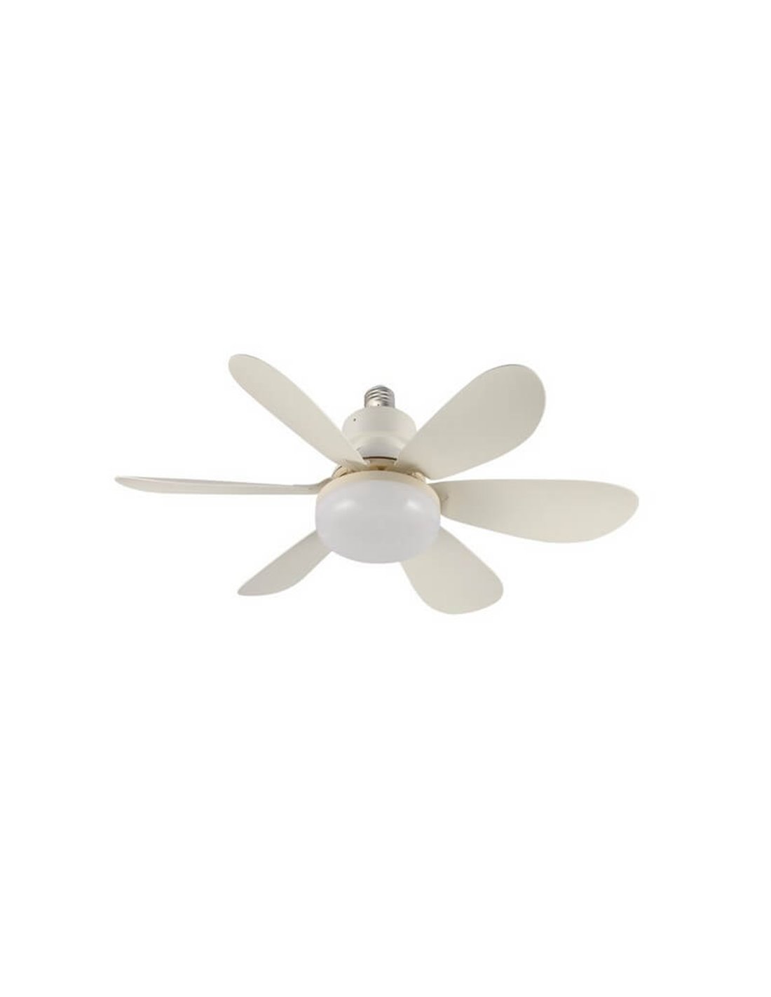 Este ventilador infantil branco é instalado em um porta-lâmpada de parafuso E27 (não incluído), com seis pás em ABS de várias cores. Projetado para quartos de crianças com motor AC de 3 velocidades e inclui controle remoto.