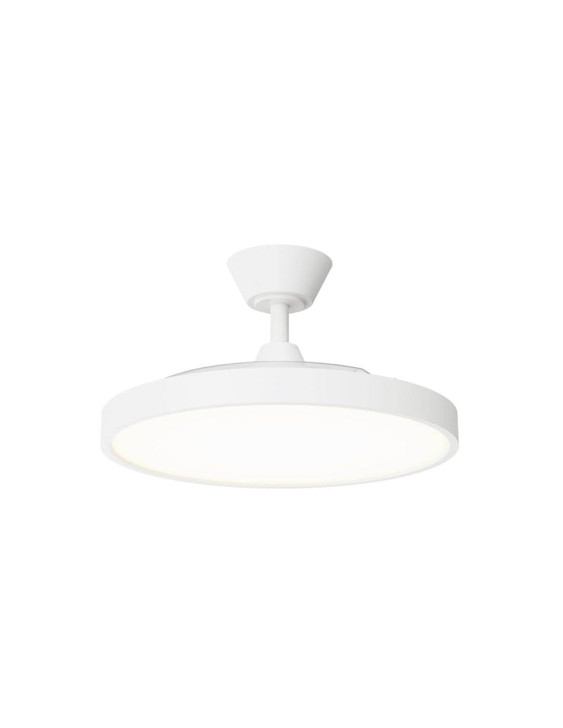 Descubra o BOMBAY STYLE M , uma reinvenção moderna do clássico ventilador de teto. Este inovador ventilador com pás retráteis transparentes transforma-se numa lâmpada discreta com luz LED CCT regulável quando as pás estão fechadas, proporcionando uma iluminação adaptável às suas necessidades. Seu design minimalista e acabamento branco fosco integram-se perfeitamente em qualquer ambiente, oferecendo funcionalidade e estilo sem sacrificar a estética.